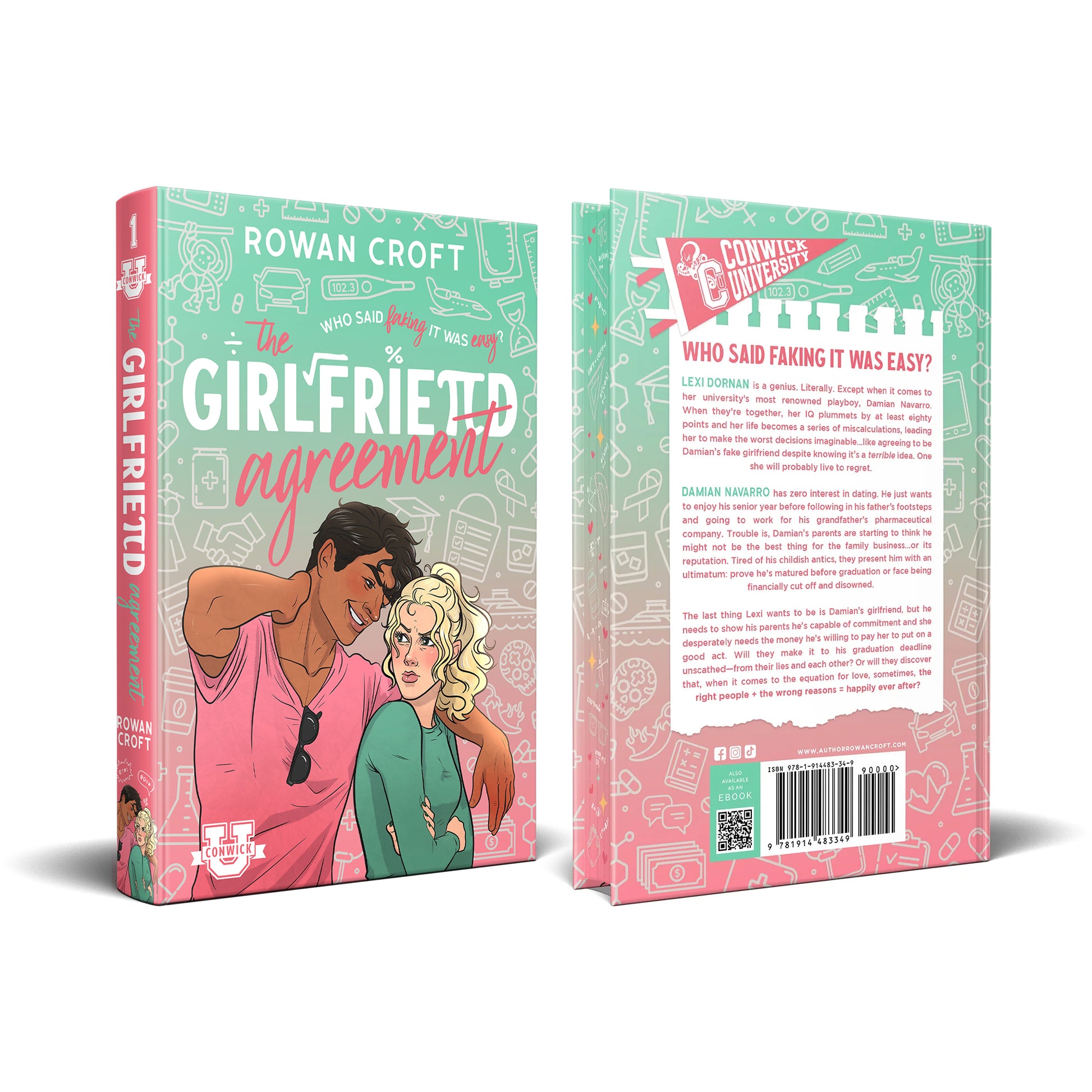 The Girlfriend Agreement is a slow-burn, laugh-out-loud college romance featuring fake dating, enemies-to-lovers tension, and a notorious playboy who meets his match in the one girl who wants nothing to do with him. Packed with sharp banter, undeniable chemistry, and just the right amount of chaos, this spicy romcom guarantees plenty of swoons, steam, and a happily ever after you won’t want to miss! This is book one in the Conwick U series. Each book follows a different couple.